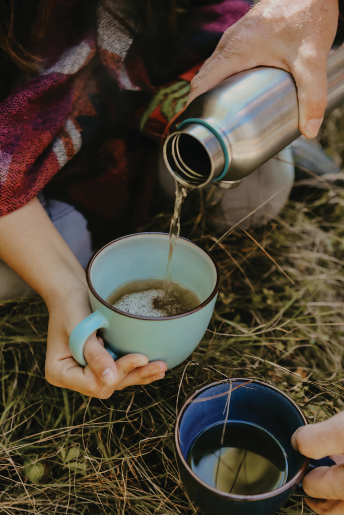 Die isolierte Wasserflasche aus Edelstahl ist eine elegante, vakuumisolierte Flasche, die Getränke bis zu 24 Stunden lang kalt oder bis zu 12 Stunden lang heiß hält. Auch der Deckel ist komplett aus Edelstahl, so dass das Wasser nicht mit Plastik in Berührung kommt. Das Kunstleder dient als Trageschlaufe und ist gleichzeitig ein hübsches Designdetail. Nur Handwäsche