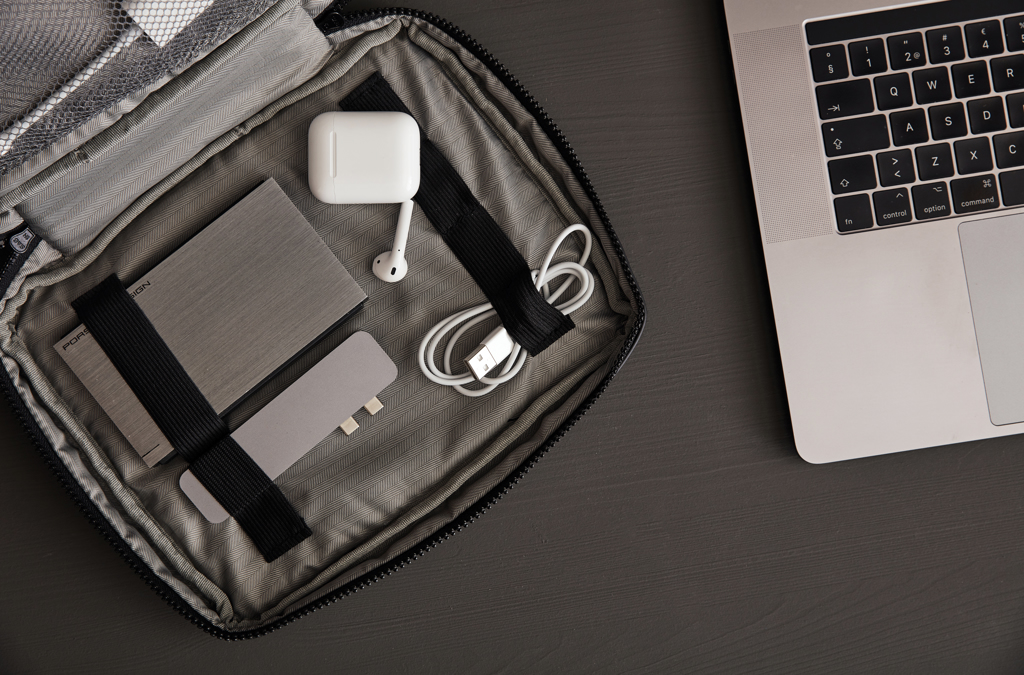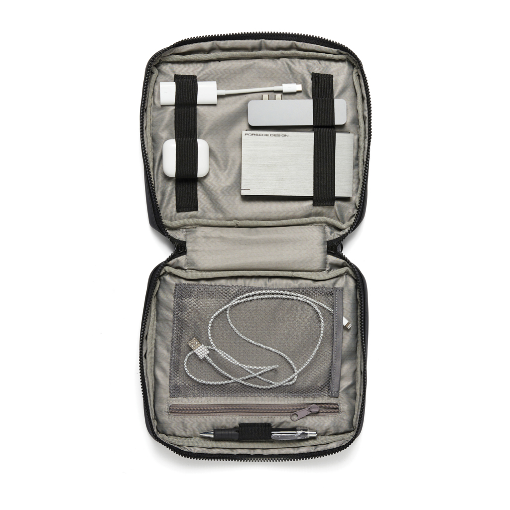 Bewahren Sie ihn diesem praktischen Organizer alle wesentlichen Dinge immer griffbereit auf. Hier haben Sie Platz für alles, was Sie während des Tages brauchen: Kopfhörer, Powerbank, Stifte und Notizbücher. Mittels des Karabinerhakens an der kurzen Seite können Sie die Tasche an einer größeren Tasche befestigen.
