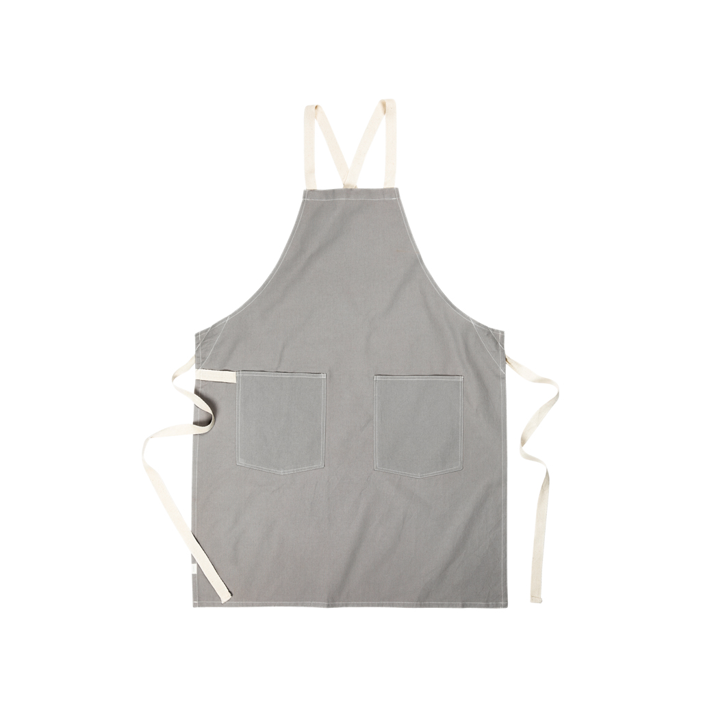 Schürze aus 70 % zertifizierter, recycelter Baumwolle aus Baumwollresten der Lieferanten. Fasern, die normalerweise als unbrauchbar gelten, haben mit dem entsprechenden Herstellungsverfahren die gewünschten Eigenschaften erreicht. Diese Schürze ist extra breit, um maximalen Schutz zu bieten. Zwei große Fronttaschen und eine Schlaufe zum Aufhängen von Utensilien oder einem Geschirrtuch.