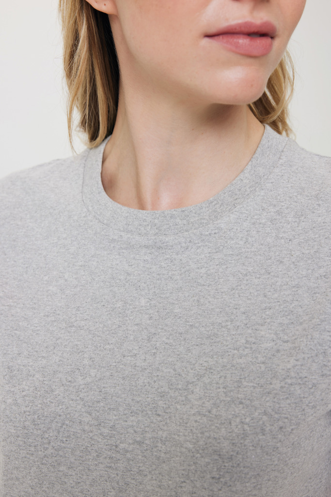 "Unisex-T-Shirt mit Classic-Fit Passform aus 100% Baumwolle, davon 50% recycelt und 50% Bio-Baumwolle, in 180gr/m². Es ist das gleiche T-Shirt wie unser IQONIQ-T-Shirt ""Bryce"". Es gibt nur einen Unterschied: Wir verzichten auf den Färbeprozess. Wir haben recycelte Baumwolle in ihrer bestehenden Farbe mit reiner Bio-Baumwolle gemischt, was den schönen Heather-Melange-Effekt erzeugt. Die Verwendung von tatsächlich recycelten und biologischen Stoffen und die Angaben zur Umweltverträglichkeit werden durch den Einsatz der bahnbrechenden AWARE™- und Blockchain-Technologie garantiert. Durch Scannen des QR-Codes erhalten Sie Zugang zu einem speziellen digitalen Pass des Produkts. 2% des Erlöses jedes verkauften Produkts werden an Water.org gespendet. Dieses Produkt ist nach OEKO-TEX® STANDARD 100 Centexbel zertifiziert. Aufgrund der Natur von recycelten Garnen können Verunreinigungen und Farbabweichungen auftreten."