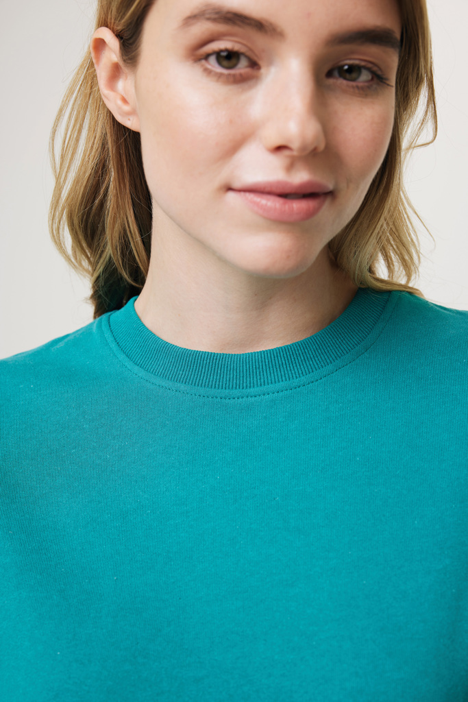 Unisex-Pullover mit Rundhalsausschnitt und Relaxed-Fit Passform aus 100% Baumwolle, davon 50% recycelte und 50% Bio-Baumwolle, in 340gr/m². Der Pullover hat überschnittene Schultern, einen Rundhalsausschnitt, weite lange Ärmel und 2x2 Rippen. Die weiche, angeraute Innenseite sorgt für zusätzlichen Komfort. Die Verwendung von tatsächlich recycelten und biologischen Stoffen und die Angaben zur Umweltverträglichkeit werden durch den Einsatz der disruptiven AWARE™- und Blockchain-Technologie garantiert. Durch Scannen des QR-Codes erhalten Sie Zugang zu einem speziellen digitalen Reisepass des Produkts. 2% des Erlöses jedes verkauften Produkts werden an Water.org gespendet. Dieses Produkt ist nach OEKO-TEX® STANDARD 100 Centexbel zertifiziert. Aufgrund der Natur von recycelten Garnen können Verunreinigungen und Farbabweichungen auftreten.