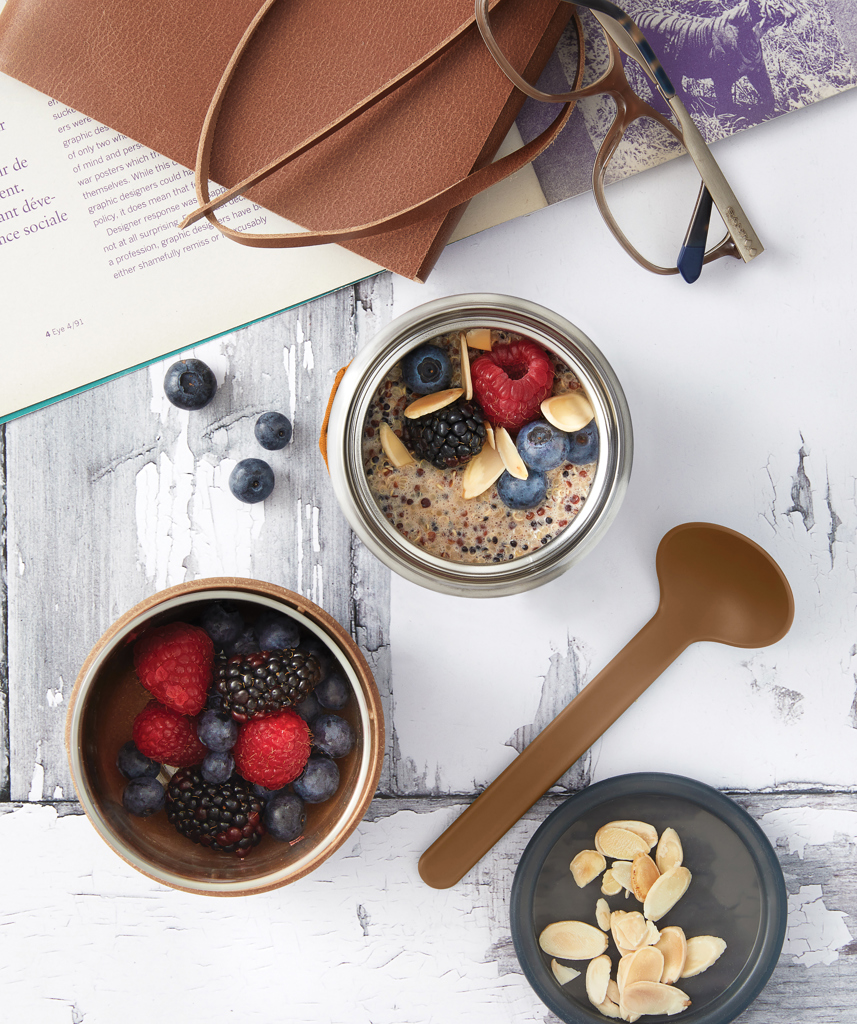 Wir haben unseren Bestseller Food Flask aktualisiert, indem wir den Deckel mit einer Unterseite aus rostfreiem Stahl versehen haben, so dass die Lebensmittel nicht mehr mit Plastik in Berührung kommen. Der Schöpflöffel enthält jetzt Holzfasern aus nachhaltiger Forstwirtschaft und das Produkt ist jetzt in einer Geschenkbox verpackt. Die Flasche ist vakuumisoliert und hält Lebensmittel bis zu 6 Stunden heiß und bis zu 8 Stunden kalt. Nur Handwäsche.