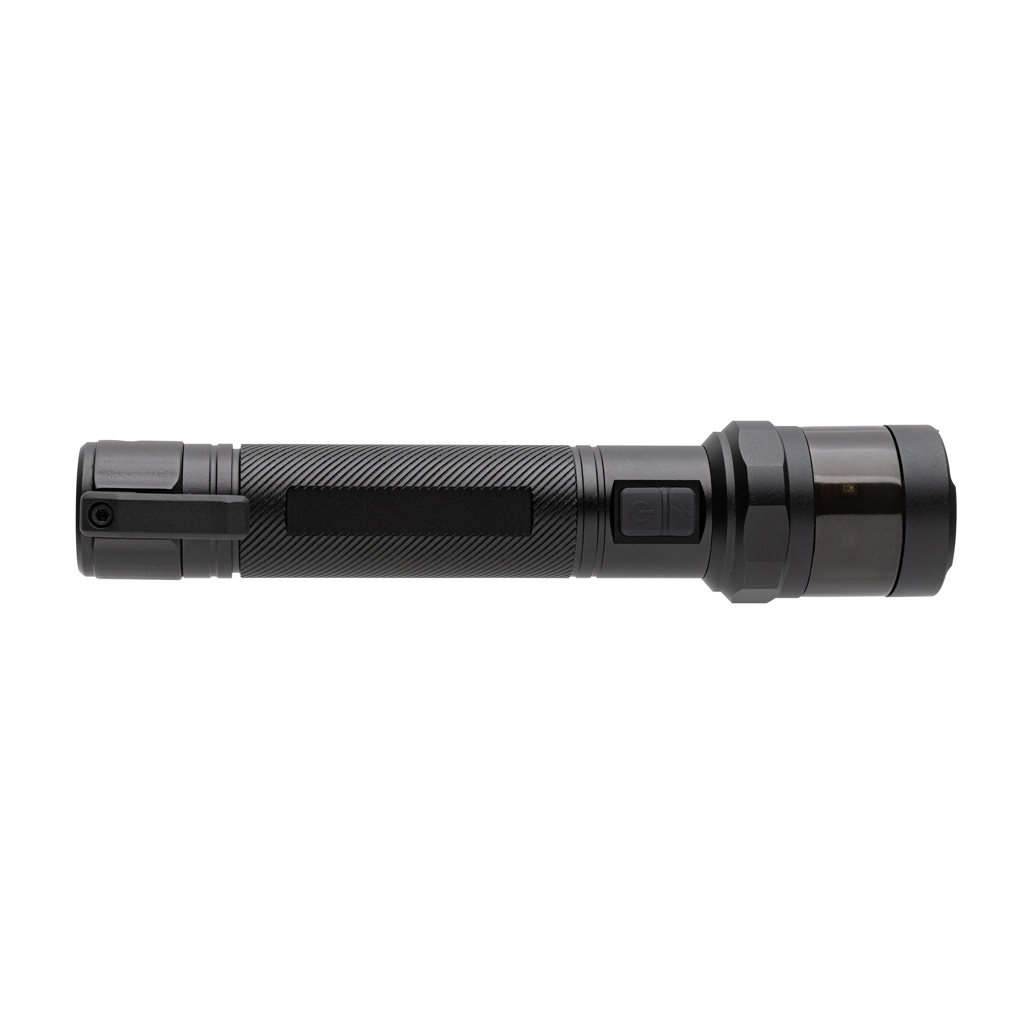 Heavy-Duty Sicherheits-COB-Tool aus RCS-zertifiziert recyceltem Aluminium und ABS. Gesamter recycelter Inhalt: 59% bezogen auf das Gesamtgewicht des Artikels. Die RCS-Zertifizierung gewährleistet eine vollständig zertifizierte Lieferkette für die recycelten Materialien. Die Taschenlampe verwendet eine wiederaufladbare 2.000 mAh A-Grade Lithiumbatterie, so dass die Batterien nicht ausgetauscht werden müssen. Einfach über die USB-Buchse aufladen. Die Taschenlampe liefert leistungsstarke 500 Lumen und hat einen Leuchtstrahl von bis zu 100 Meter. Die LED-Leuchte verfügt über 4 Modi (100%, 50%, 30% und Blinken). Mit roter Notfall-LED, die in 3 Modi betrieben werden kann (schnelles Blinken, langsames Blinken und SOS). Mit integriertem Gurtschneider und Scheibenhammer, sowie mit Magnet zur Befestigung an einer magnetischen Oberfläche. Betriebsdauer mit einer Ladung: bis zu 2 Stunden. Wasserdicht nach IPX 4.