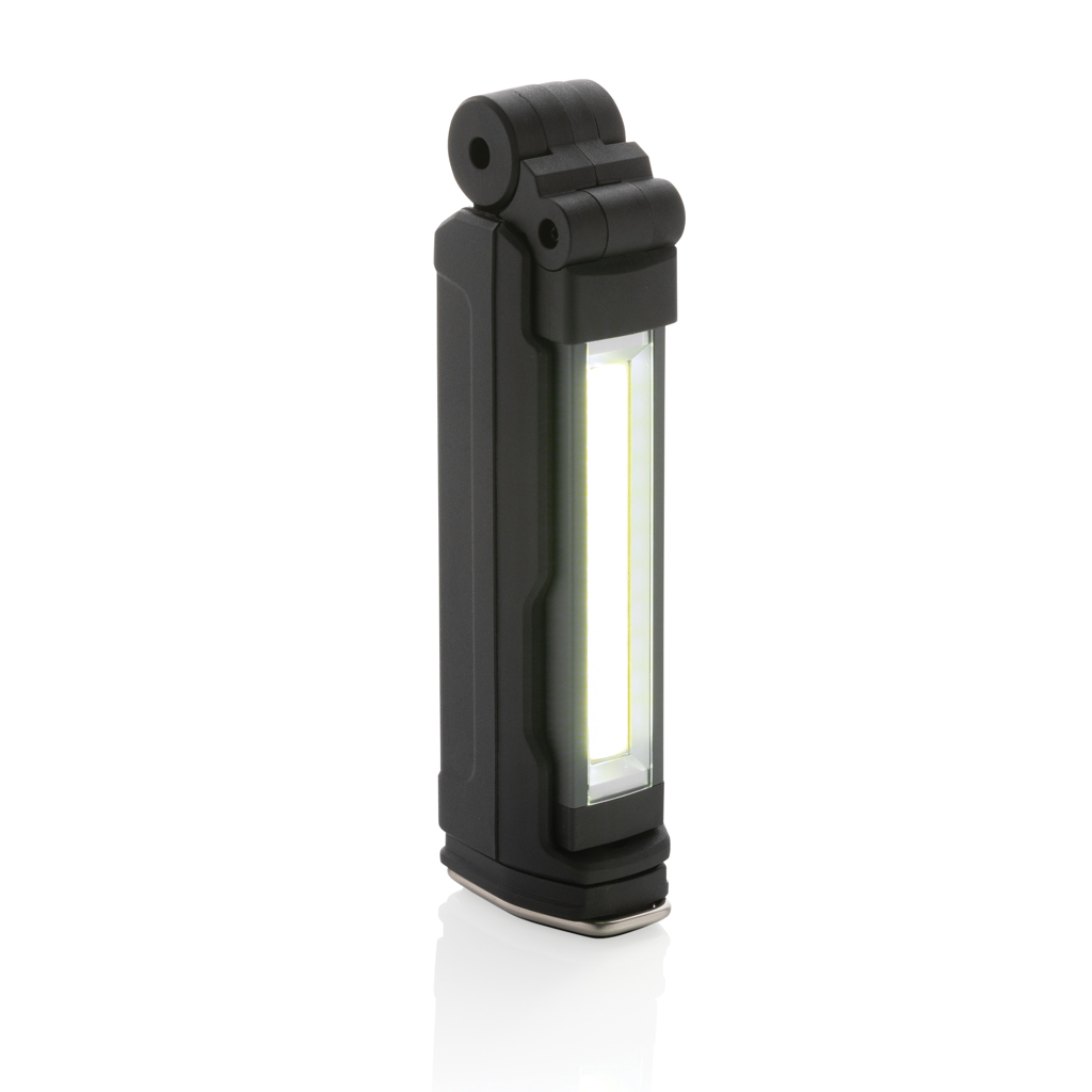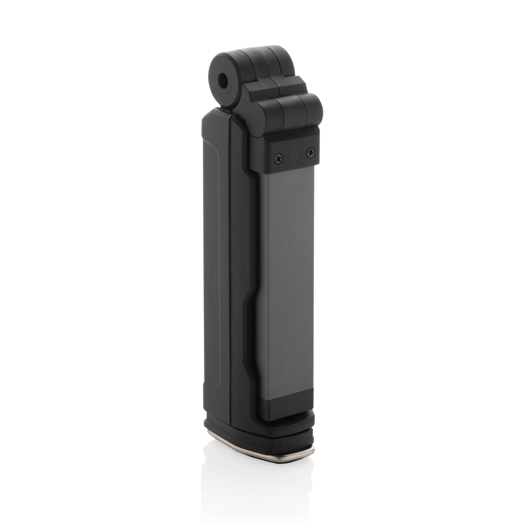 Funktionalität und Design vereinen sich in dieser wiederaufladbaren Hochleistungs-Arbeitsleuchte aus RCS-zertifiziert recyceltem ABS-Kunststoff. Gesamter recycelter Inhalt: 25% basierend auf dem Gesamtgewicht des Artikels. Die RCS-Zertifizierung gewährleistet eine vollständig zertifizierte Lieferkette für die recycelten Materialien. Die regenfeste Arbeitsleuchte hat eine wiederaufladbare A-Grade Lithiumbatterie mit 2000 mAh, so dass kein Batteriewechsel erforderlich ist. Das Aufladen erfolgt einfach über eine USB-Buchse und die mitgelieferte Ladestation. Die Arbeitsleuchte verfügt über 600 Lumen COB-Licht und 200 Lumen LED-Licht. Mit 4 Modi: LED, COB, COB rot, COB Notfallblinken. Das Licht kann komplett um 360 Grad gedreht werden. Mit Magnet und Haken an der Unterseite. Mit Typ-C-Anschluss zum Aufladen und USB-A-Anschluss zum Aufladen von mobilen Geräten. Betriebszeit mit einer Ladung: bis zu 3 Stunden.