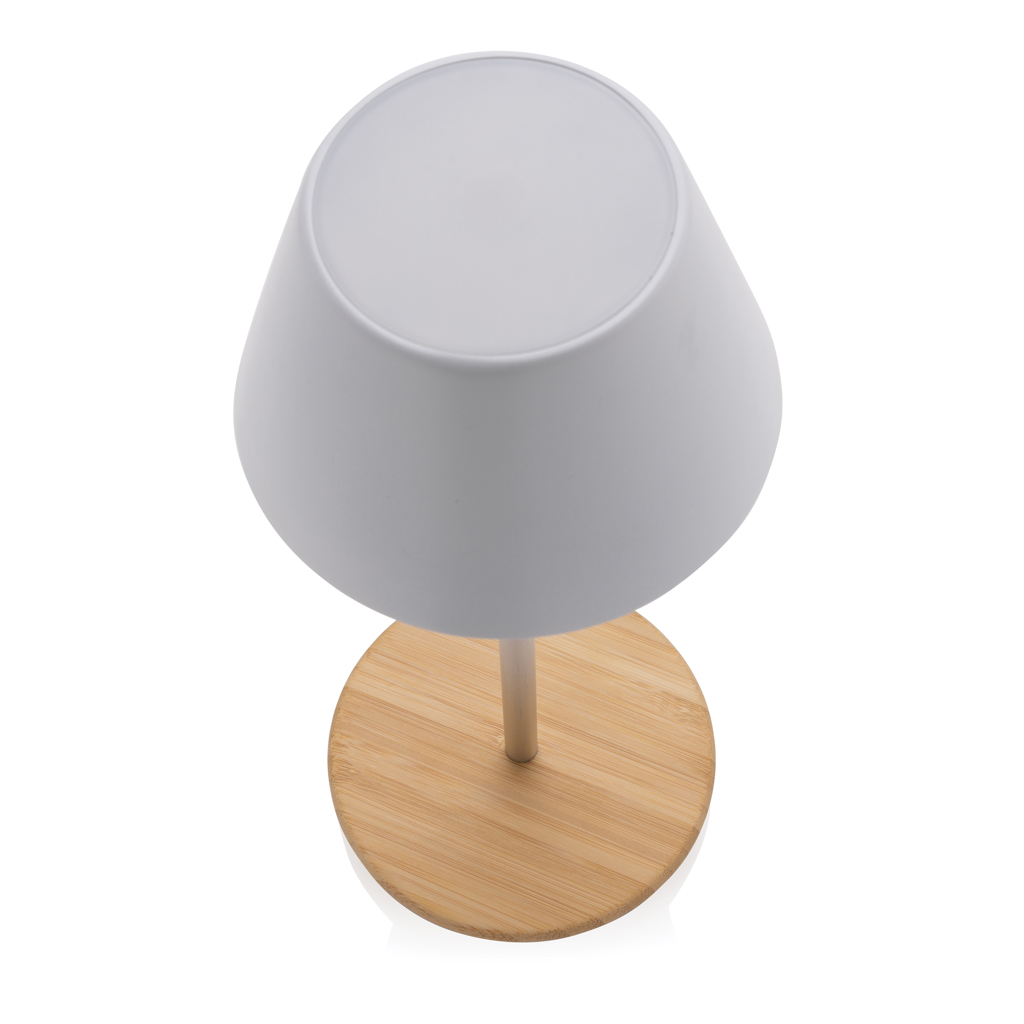 Luxuriöse Tischleuchte aus RCS-zertifizierte recyceltem ABS-Kunststoff, recyceltem Aluminium und 100% FSC-Bambus. Gesamter recycelter Inhalt: 40%, bezogen auf das Gesamtgewicht des Artikels. Die RCS-Zertifizierung gewährleistet eine vollständig zertifizierte Lieferkette für die recycelten Materialien. Die Tischleuchte hat eine Betriebsdauer von bis zu 12 Stunden mit einer einzigen Ladung und kann in 2 Stunden wieder aufgeladen werden. Mit 1800mAh-Akku und Type-C-Eingang (5V/1A). Mit zwei Modi (warmes Licht und weißes Licht), die über einen Berührungssensor im Sockel eingestellt werden können. Wiederaufladbar über USB-C. Verpackt in FSC®-Mix-Verpackung. IPX 4 wasserfest.