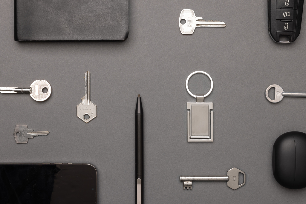 Produktinformationen "Schlüsselanhänger&Telefonständer aus RCS rec. Zinklegierung"