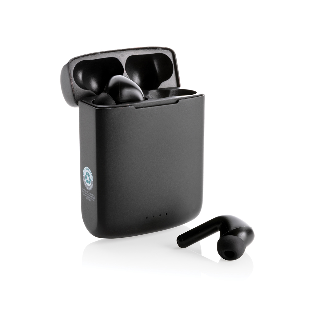 Einzigartige, zweifach aufladbare kabellose Ohrhörer aus RCS-zertifiziert recyceltem ABS mit integriertem Solarpanel im Gehäuse . Gesamter recycelter Inhalt: 21% basierend auf dem Gesamtgewicht des Artikels. Die RCS-Zertifizierung gewährleistet eine vollständig zertifizierte Lieferkette für die recycelten Materialien. Der Lautsprecher verwendet hochwertige monokristalline Solarzellen mit einer Umwandlungsrate von 19%. Ladegeschwindigkeit hängt von den Umgebungsbedingungen ab. Aufladegeschwindigkeit Solar: 5V/50mA. Die passgenauen Ohrhörer verfügen über einen 35mAh-Akku und können in dem 300mAh-Lade-Case innerhalb von 2h wieder aufgeladen werden. Mit automatischer Kopplungsfunktion. Spieldauer bei mittlerer Lautstärke bis zu 5h. Mit BT 5.3 für eine optimale Verbindung auf bis zu 10m. Mit Anruf-Annahme und Mikrofon. Inklusive Silikon-Ohrstöpsel in 3 Größen. Inklusive RCS-zertifiziert recyceltem TPE-Ladekabel. Verpackt in FSC®-Mix-Kraftverpackung. Artikel und Zubehör 100% PVC-frei.