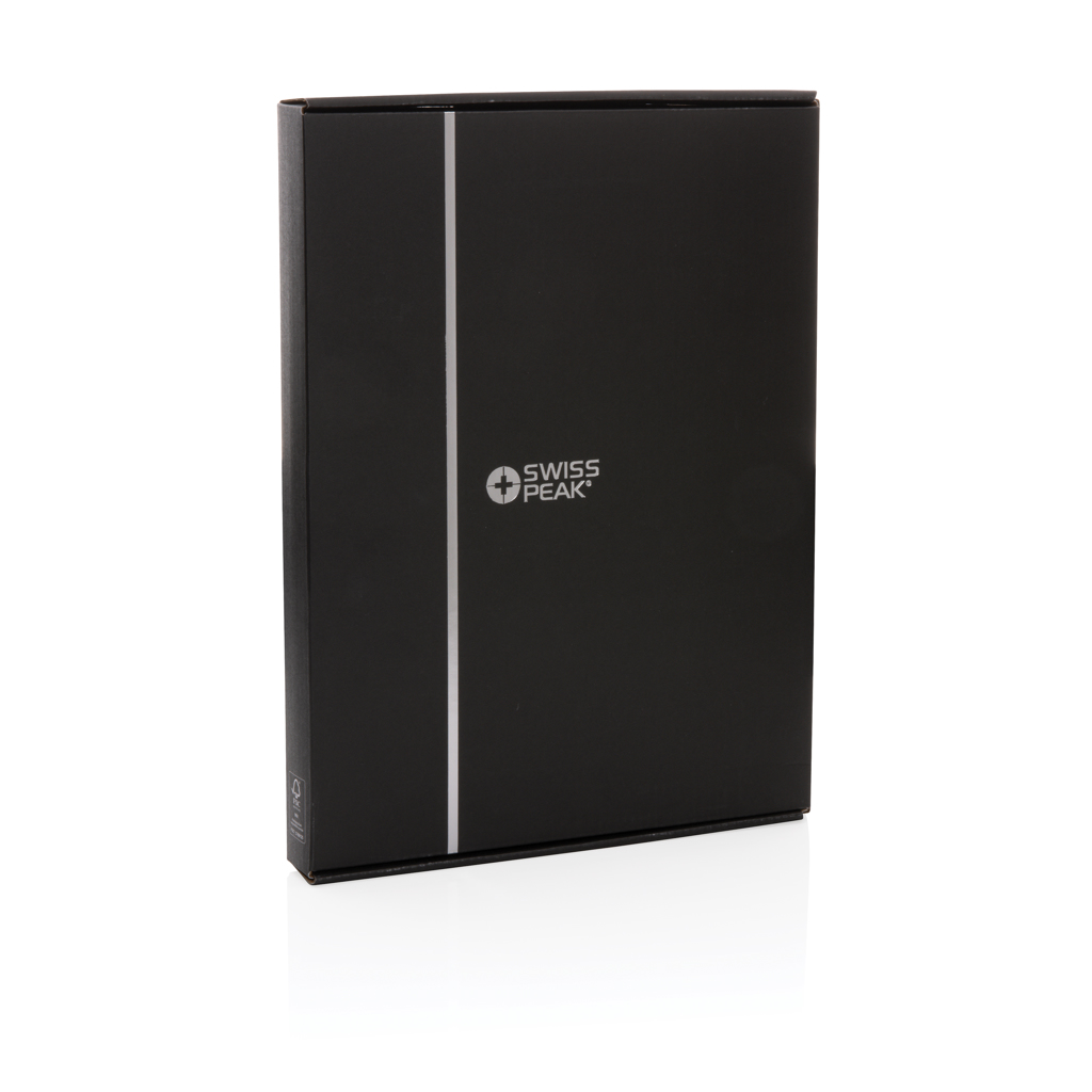 Die Swiss Peak Heritage Kollektion spricht die Sprache moderner Eleganz. Das Portfolio mit recyceltem PU-Cover und Reißverschluss hat einen Tablet-/Telefonständer, Visitenkartenfächer, sowie Fächer für Ihre Notizen und Papiere und noch eine Stiftschlaufe. Mit liniertem 20-Blatt-A4-Steinpapier-Notizblock. wird aus RCS (Recycled Claim Standard)-zertifiziert recycelten Materialien hergestellt. Die RCS-Zertifizierung gewährleistet eine vollständig zertifizierte Lieferkette der recycelten Materialien. Hergestellt aus RCS-zertifiziertem, recyceltem PU. Gesamter Recyclinganteil: 9%, bezogen auf das Gesamtgewicht des Artikels. PVC-frei.