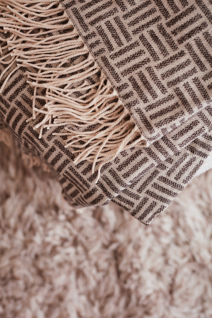 Jacquard-gewebte Decke mit einem feinsinnigen geometrischen Muster, das der Decke ein stilvolles Design verleiht – ideal für Ihr Zuhause. Eine hübsche Decke für alle, die nicht nur Wert auf Bequemlichkeit legen, sondern ihrem Zuhause auch einen stilvollen Look verleihen wollen. Hergestellt aus 100% Acryl, einem künstlich hergestellten synthetischen Material mit Eigenschaften, die Wollfasern nahe komen. 220gr/m². 130x170cm.